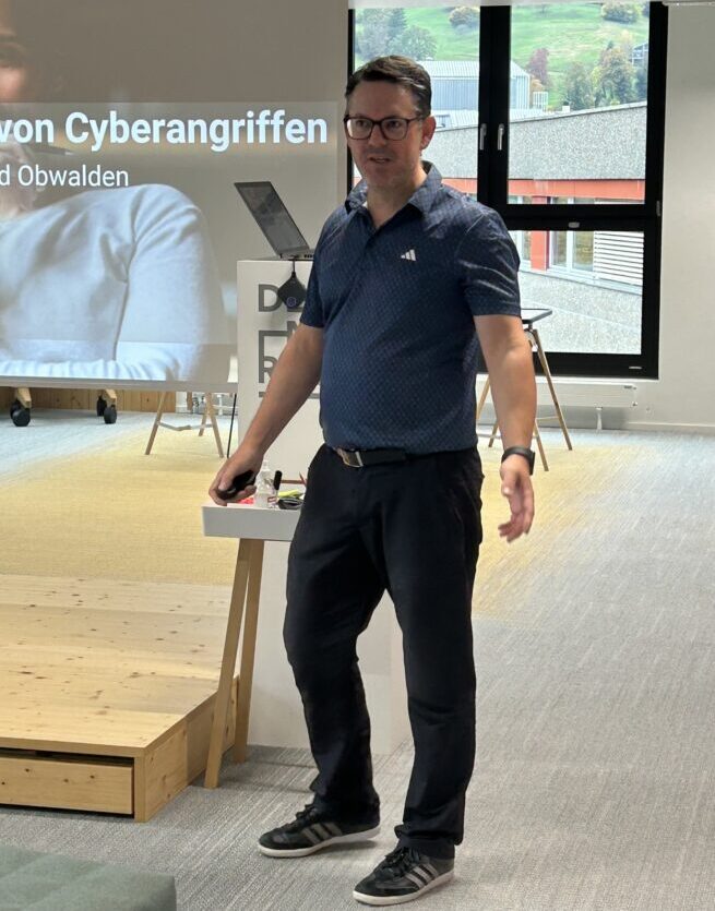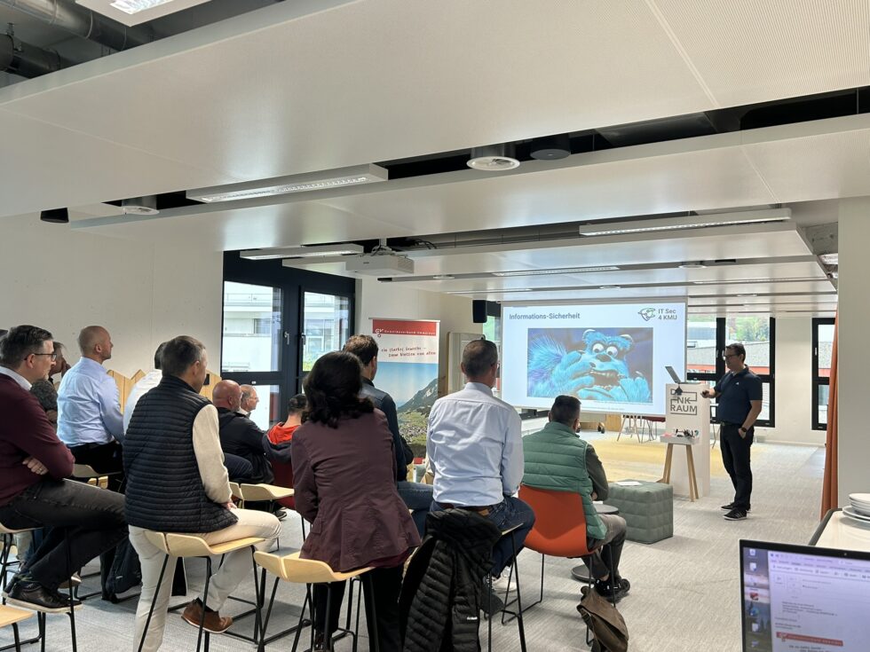 Am 20. Oktober 2025 hat der Gewerbeverband Obwalden zum ersten Unternehmerlunch in den DENKRAUM im QUBO eingeladen. Sascha Karlen von der Hochschule Luzern hat zum Thema „ITSec4KMU“ referiert. Gut 25 Personen sind der Einladung gefolgt.
